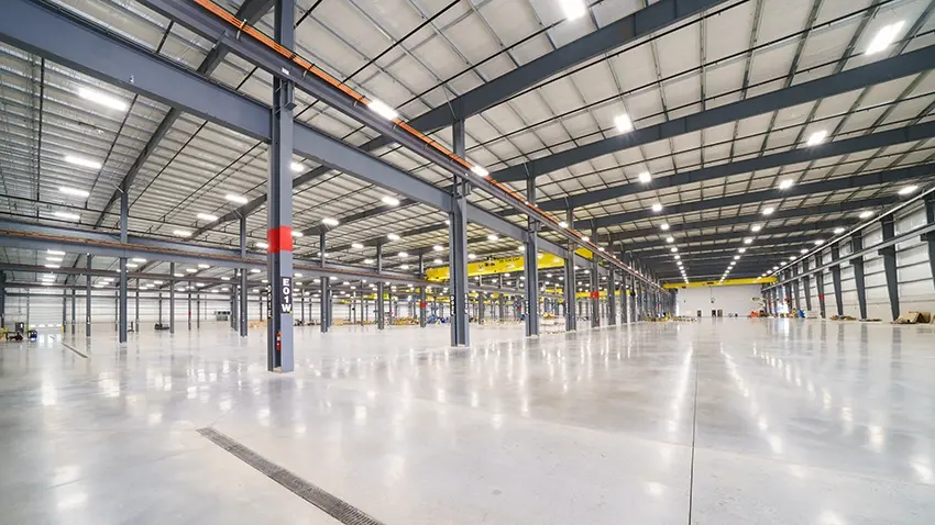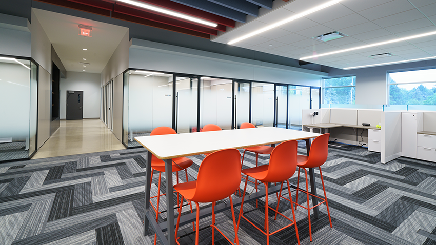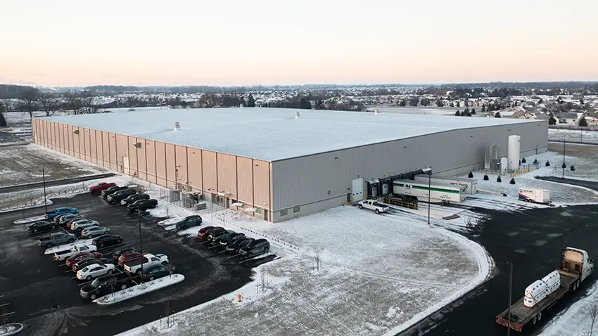 Designed with both functionality and aesthetics in mind, the building features a modern office space that encourages collaboration through open meeting areas. Initial concerns from neighbors about the building’s appearance were addressed with the Varco Pruden Vee Rib wall system, which offers a clean, attractive design that blends into the surroundings. The process building includes a durable split-face masonry wall and a steel structure engineered to support heavy equipment loads.